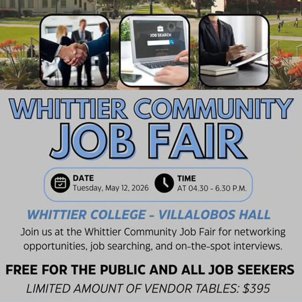 @ Liberty Community Plaza 4 pm Liberty Community Plaza, 14181 Telegraph Rd, Whittier, CA 90604, United States #0055A5 18/05/2026 7 pm @ Uptown Whittier YMCA - Gym 8 am #AF5010 2 pm @ Whittier Central Library 6 pm 7344 Washington Ave, Whittier, CA 90602 #0055A5 9 pm @ Whittier Community Center 5 pm 7630 Washington Ave, Whittier, CA 90602 #0055A5 6:30 am #0055A5 12 pm